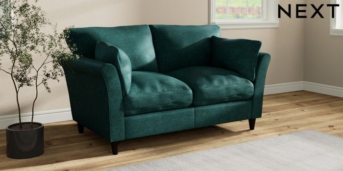 7.3.1 Buy Hartley Relaxed Sit 2 Seater Sofa Plush Chenille Dark Teal Green Low Conical - Dark from the Next UK online shop