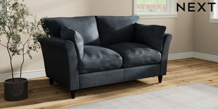 7.3.1 Buy Hartley Relaxed Sit 2 Seater Sofa Plush Chenille Slate Blue Low Conical - Dark from the Next UK online shop