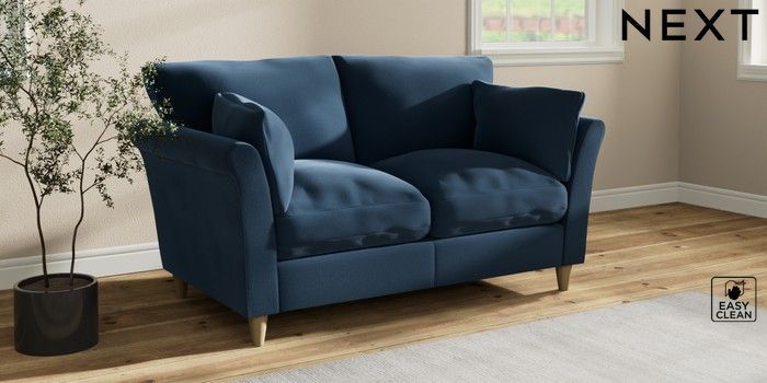 7.3.1 Buy Hartley Relaxed Sit 2 Seater Sofa Plush Velvet Easy Clean Airforce Blue Low Conical - Light from the Next UK online shop