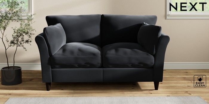 7.2.10 Buy Hartley Relaxed Sit 2 Seater Sofa Plush Velvet Easy Clean Charcoal Grey Low Conical - Dark from the Next UK online shop Click here to use our accessible website