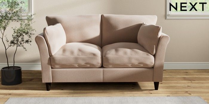 7.2.10 Buy Hartley Relaxed Sit 2 Seater Sofa Relaxed Linen Look Mid Natural Low Conical - Dark from the Next UK online shop Click here to use our accessible website