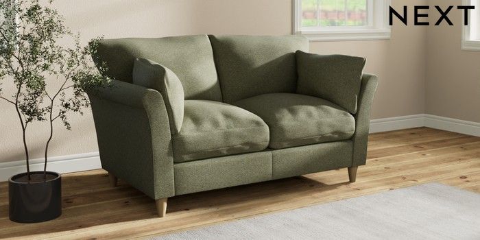 7.3.1 Buy Hartley Relaxed Sit 2 Seater Sofa Tweedy Chenille Mid Moss Green Low Conical - Light from the Next UK online shop