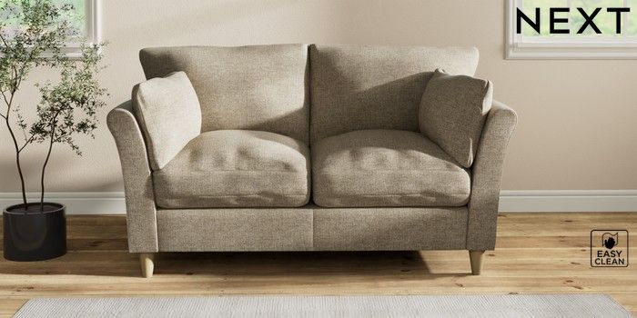 7.2.10 Buy Hartley Relaxed Sit 2 Seater Sofa Woven Chenille Easy Clean Mid Natural Low Conical - Light from the Next UK online shop Click here to use our accessible website