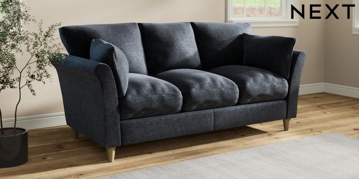 7.3.1 Buy Hartley Relaxed Sit 3 Cushion 3 Seater Sofa Boucle Chenille Dark Slate Blue Low Conical - Light from the Next UK online shop
