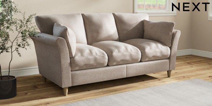 7.3.1 Buy Hartley Relaxed Sit 3 Cushion 3 Seater Sofa Boucle Chenille Light Natural Low Conical - Light from the Next UK online shop