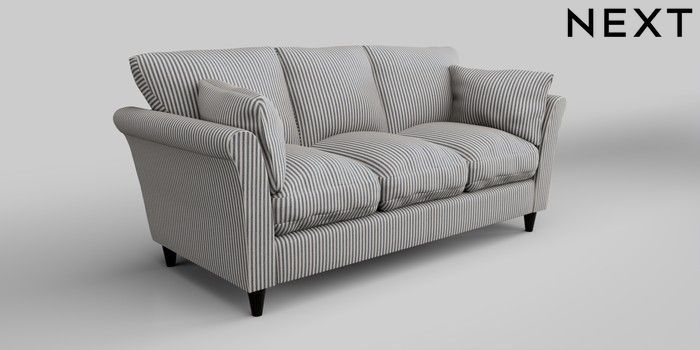 6.12.1 Buy Hartley Relaxed Sit 3 Cushion 3 Seater Sofa Chenille Stripe Slate Blue Low Conical - Dark from the Next UK online shop Click here to use our accessible website