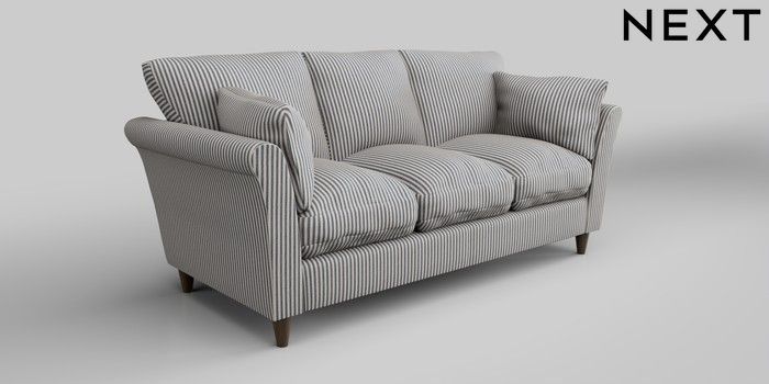 6.12.1 Buy Hartley Relaxed Sit 3 Cushion 3 Seater Sofa Chenille Stripe Slate Blue Low Conical - Mid from the Next UK online shop Click here to use our accessible website
