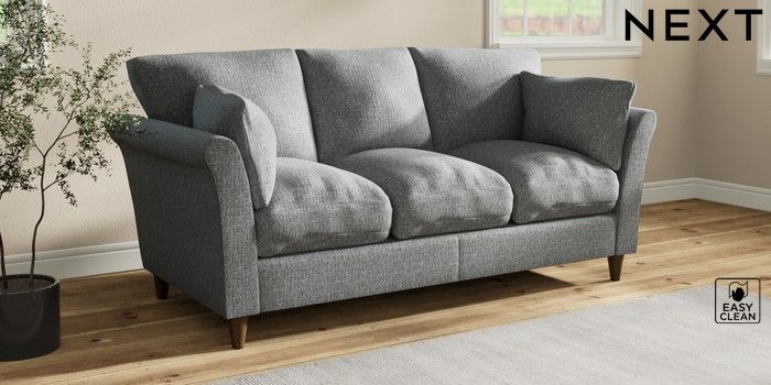 7.3.1 Buy Hartley Relaxed Sit 3 Cushion 3 Seater Sofa Chunky Boucle Easy Clean Mid Grey Low Conical - Mid from the Next UK online shop