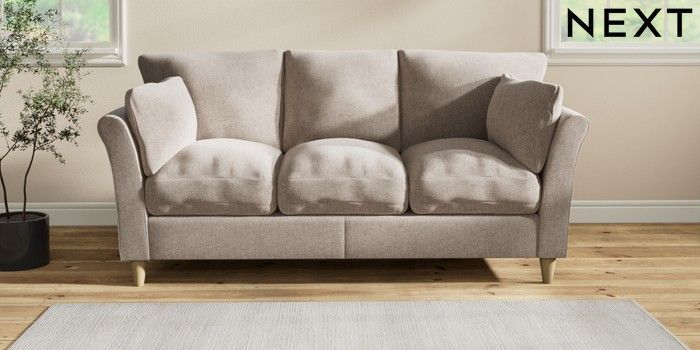 7.2.10 Buy Hartley Relaxed Sit 3 Cushion 3 Seater Sofa Chunky Chenille Light Dove Low Conical - Light from the Next UK online shop Click here to use our accessible website
