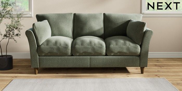 7.2.10 Buy Hartley Relaxed Sit 3 Cushion 3 Seater Sofa Chunky Texture Mid Forest Green Low Conical - Mid from the Next UK online shop Click here to use our accessible website