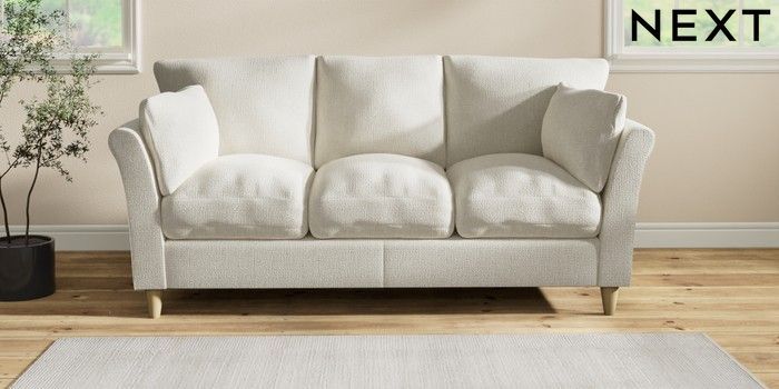 7.2.10 Buy Hartley Relaxed Sit 3 Cushion 3 Seater Sofa Chunky Texture Oyster Low Conical - Light from the Next UK online shop Click here to use our accessible website