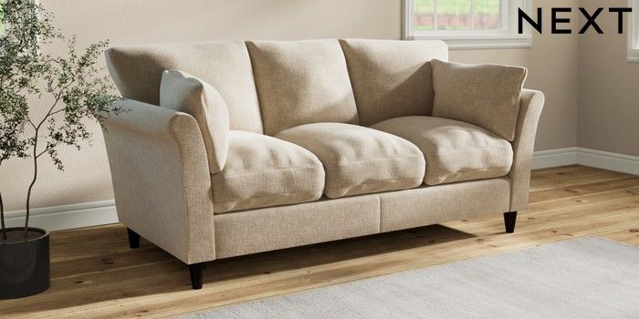 7.3.1 Buy Hartley Relaxed Sit 3 Cushion 3 Seater Sofa Chunky Weave Cream Low Conical - Dark from the Next UK online shop