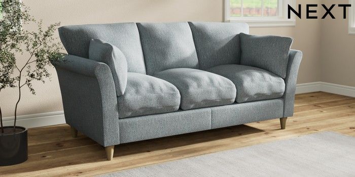 7.3.1 Buy Hartley Relaxed Sit 3 Cushion 3 Seater Sofa Chunky Weave Mid Blue Low Conical - Light from the Next UK online shop