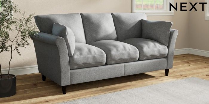 7.3.1 Buy Hartley Relaxed Sit 3 Cushion 3 Seater Sofa Chunky Weave Mid Grey Low Conical - Dark from the Next UK online shop