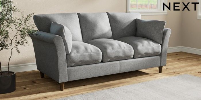 7.3.1 Buy Hartley Relaxed Sit 3 Cushion 3 Seater Sofa Chunky Weave Mid Grey Low Conical - Mid from the Next UK online shop