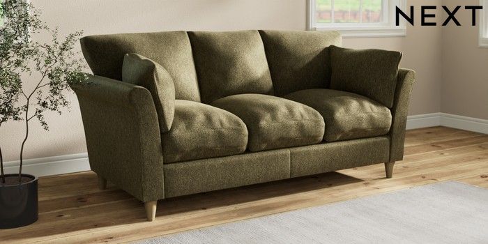 7.3.1 Buy Hartley Relaxed Sit 3 Cushion 3 Seater Sofa Cotswold Chenille Dark Green Low Conical - Light from the Next UK online shop