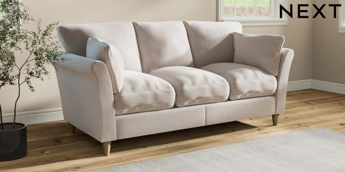 7.3.1 Buy Hartley Relaxed Sit 3 Cushion 3 Seater Sofa Cotswold Chenille Oyster Low Conical - Light from the Next UK online shop