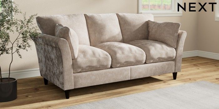 7.3.1 Buy Hartley Relaxed Sit 3 Cushion 3 Seater Sofa Distressed Velour Mid Natural Low Conical - Dark from the Next UK online shop