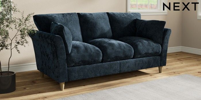 7.3.1 Buy Hartley Relaxed Sit 3 Cushion 3 Seater Sofa Distressed Velour Midnight Blue Low Conical - Light from the Next UK online shop
