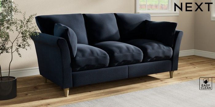 7.3.1 Buy Hartley Relaxed Sit 3 Cushion 3 Seater Sofa Fine Chenille Easy Clean Dark Navy Blue Low Conical - Light from the Next UK online shop