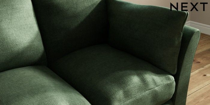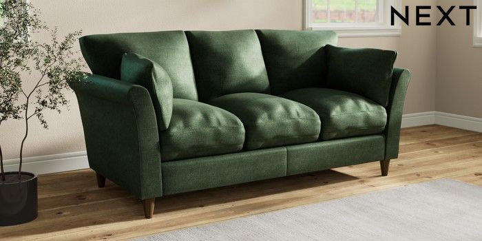 7.3.1 Buy Hartley Relaxed Sit 3 Cushion 3 Seater Sofa Luxe Chenille Dark Green Low Conical - Mid from the Next UK online shop