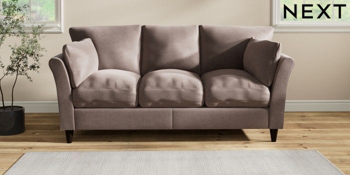 7.2.10 Buy Hartley Relaxed Sit 3 Cushion 3 Seater Sofa Luxe Chenille Mink Brown Low Conical - Dark from the Next UK online shop Click here to use our accessible website