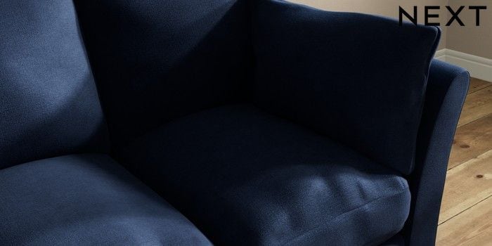 7.3.1 Buy Hartley Relaxed Sit 3 Cushion 3 Seater Sofa Luxe Chenille Navy Blue Low Conical - Light from the Next UK online shop