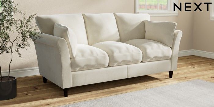 7.3.8 Buy Hartley Relaxed Sit 3 Cushion 3 Seater Sofa Luxe Chenille Oyster Low Conical - Dark from the Next UK online shop
