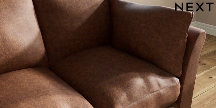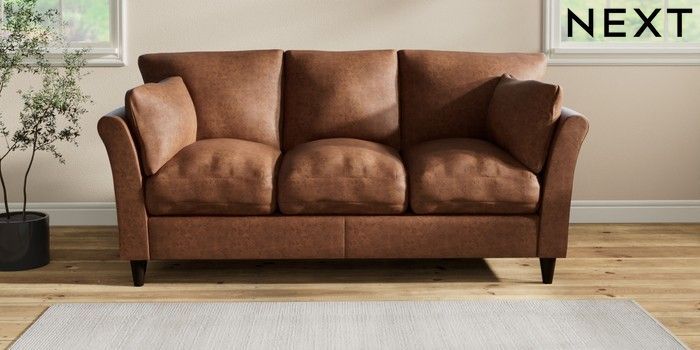 7.3.1 Buy Hartley Relaxed Sit 3 Cushion 3 Seater Sofa Monza Faux Leather Easy Clean Chestnut Brown Low Conical - Dark from the Next UK online shop Click here to use our accessible website