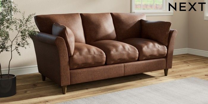 7.3.1 Buy Hartley Relaxed Sit 3 Cushion 3 Seater Sofa Monza Faux Leather Easy Clean Chestnut Brown Low Conical - Mid from the Next UK online shop Click here to use our accessible website