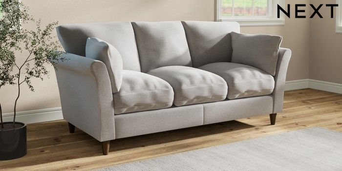 7.3.1 Buy Hartley Relaxed Sit 3 Cushion 3 Seater Sofa Natural Mix Light Grey Low Conical - Mid from the Next UK online shop