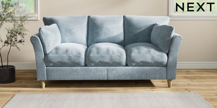 7.2.6 Buy Hartley Relaxed Sit 3 Cushion 3 Seater Sofa Plush Chenille Light Blue Low Conical - Light from the Next UK online shop Click here to use our accessible website