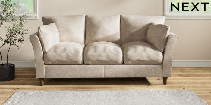 7.2.10 Buy Hartley Relaxed Sit 3 Cushion 3 Seater Sofa Plush Chenille Light Natural Low Conical - Mid from the Next UK online shop Click here to use our accessible website