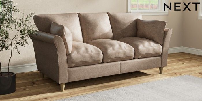 7.3.1 Buy Hartley Relaxed Sit 3 Cushion 3 Seater Sofa Plush Chenille Mid Natural Low Conical - Light from the Next UK online shop