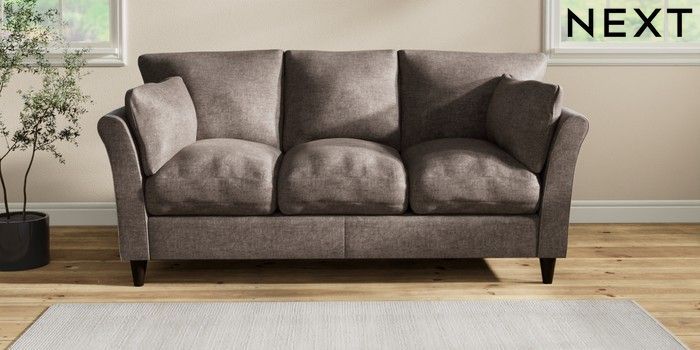 7.2.10 Buy Hartley Relaxed Sit 3 Cushion 3 Seater Sofa Plush Chenille Mink Brown Low Conical - Dark from the Next UK online shop Click here to use our accessible website