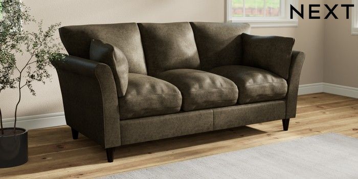 7.3.1 Buy Hartley Relaxed Sit 3 Cushion 3 Seater Sofa Plush Chenille Moss Green Low Conical - Dark from the Next UK online shop