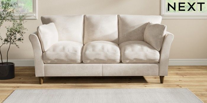 7.2.10 Buy Hartley Relaxed Sit 3 Cushion 3 Seater Sofa Plush Chenille Oyster Low Conical - Mid from the Next UK online shop Click here to use our accessible website