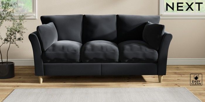7.3.1 Buy Hartley Relaxed Sit 3 Cushion 3 Seater Sofa Plush Velvet Easy Clean Charcoal Grey Low Conical - Light from the Next UK online shop Click here to use our accessible website