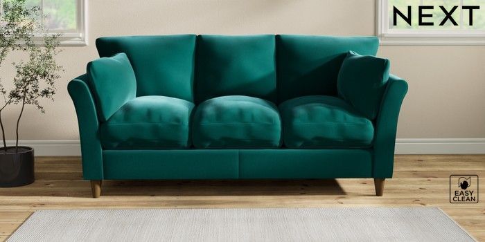 7.3.1 Buy Hartley Relaxed Sit 3 Cushion 3 Seater Sofa Plush Velvet Easy Clean Juniper Green Low Conical - Mid from the Next UK online shop Click here to use our accessible website