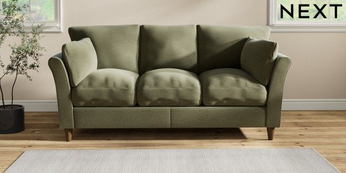 7.2.10 Buy Hartley Relaxed Sit 3 Cushion 3 Seater Sofa Ripple Chenille Mid Moss Green Low Conical - Mid from the Next UK online shop Click here to use our accessible website