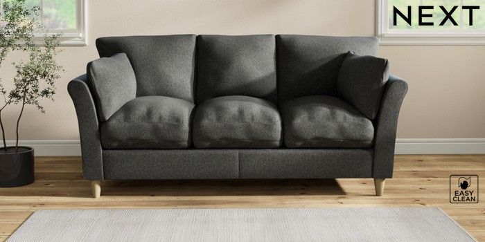 7.2.10 Buy Hartley Relaxed Sit 3 Cushion 3 Seater Sofa Tweedy Blend Easy Clean Charcoal Grey Low Conical - Light from the Next UK online shop Click here to use our accessible website