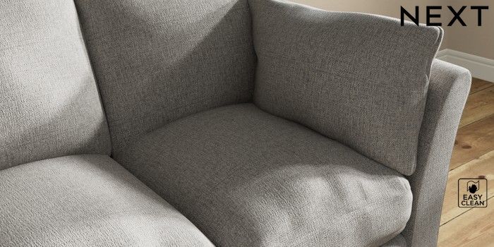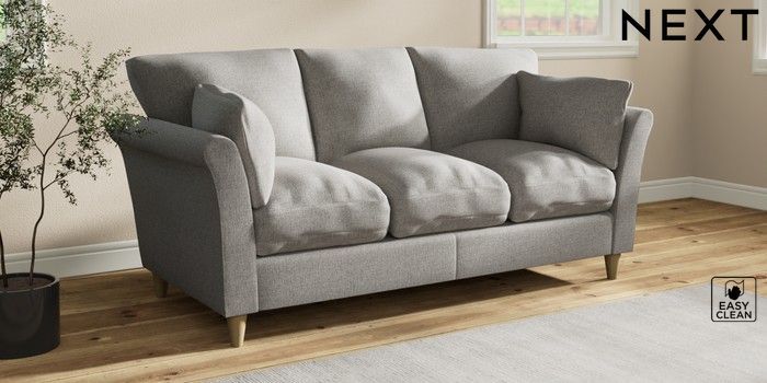 7.3.1 Buy Hartley Relaxed Sit 3 Cushion 3 Seater Sofa Woven Chenille Easy Clean Light Grey Low Conical - Light from the Next UK online shop