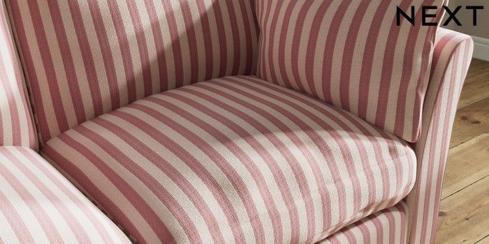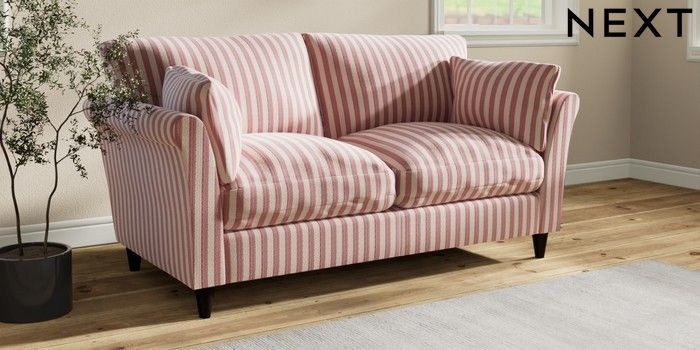 7.3.1 Buy Hartley Relaxed Sit 3 Seater Small Sofa Bold Chenille Stripe Dark Pink Low Conical - Dark from the Next UK online shop