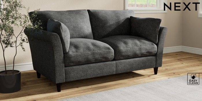 7.3.1 Buy Hartley Relaxed Sit 3 Seater Small Sofa Boucle Weave Easy Clean Charcoal Grey Low Conical - Dark from the Next UK online shop