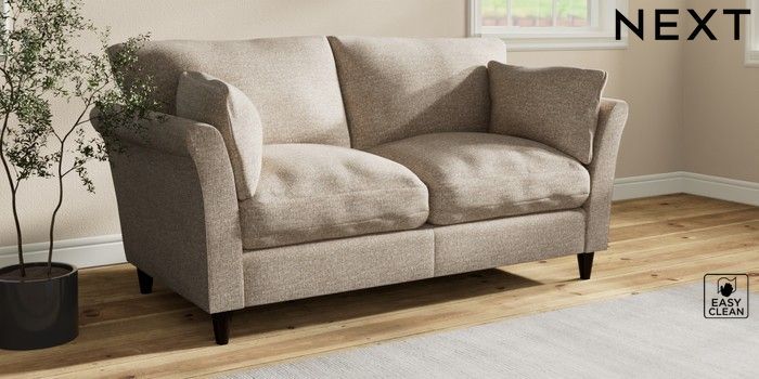 7.3.1 Buy Hartley Relaxed Sit 3 Seater Small Sofa Chunky Boucle Easy Clean Mid Natural Low Conical - Dark from the Next UK online shop
