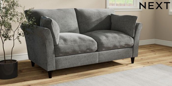 7.3.1 Buy Hartley Relaxed Sit 3 Seater Small Sofa Chunky Chenille Dark Grey Low Conical - Dark from the Next UK online shop