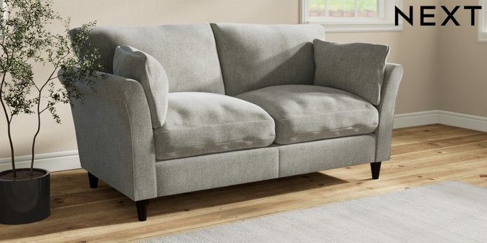 7.3.1 Buy Hartley Relaxed Sit 3 Seater Small Sofa Chunky Chenille Light Grey Low Conical - Dark from the Next UK online shop