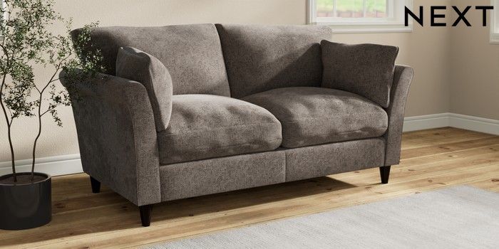 7.3.1 Buy Hartley Relaxed Sit 3 Seater Small Sofa Chunky Chenille Mink Brown Low Conical - Dark from the Next UK online shop