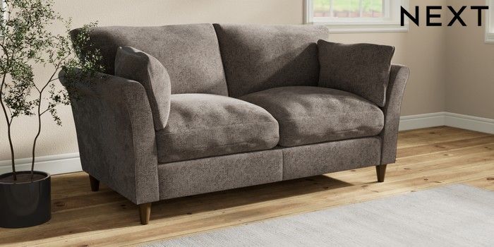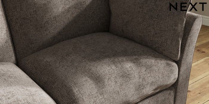 7.3.1 Buy Hartley Relaxed Sit 3 Seater Small Sofa Chunky Chenille Mink Brown Low Conical - Mid from the Next UK online shop