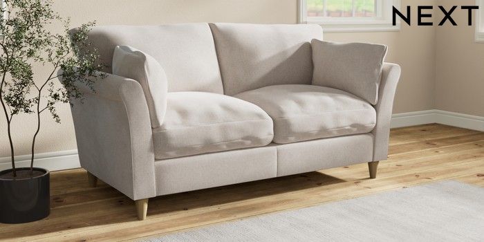 7.3.1 Buy Hartley Relaxed Sit 3 Seater Small Sofa Chunky Chenille Oyster Low Conical - Light from the Next UK online shop Click here to use our accessible website